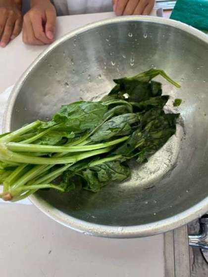 調理実習でほうれん草のおひたしをつくりました!ガスも安全に使えていました(*^_^*)