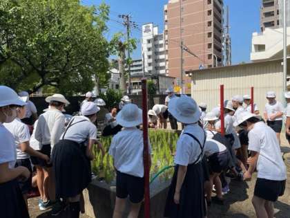 今日は田んぼの観察を行いました。稲の丈は約20cmほどとなっていました。すくすくと育っていってほしいですね(*'▽')