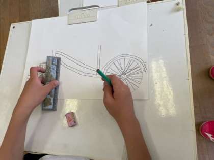 自転車のスケッチをしています。細かい部分までうまく表現しています(*'▽')