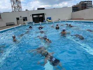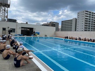 今日から水泳の学習が始まりました。音楽に合わせて水慣れをしたり、イワシのようにまっすぐけのびをする練習をしました。久しぶりの水泳の学習に子どもたちはとても嬉しそうでした!