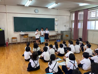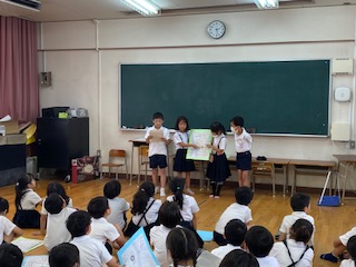 今日は生活科の学習で町たんけんで伺った場所について調べたことの発表を行いました。地図を使って場所を説明したり、クイズ形式にして発表したりと上手に発表できました。