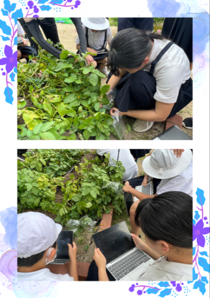 前回に引き続き、タブレットを使って観察の記録をしているようです。葉に袋をかけ、時間をおいて改めて観察していました。