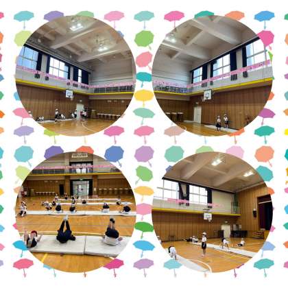 今日の体育は、気温が低くプールに入れなかったので、講堂でマット遊びをしました。