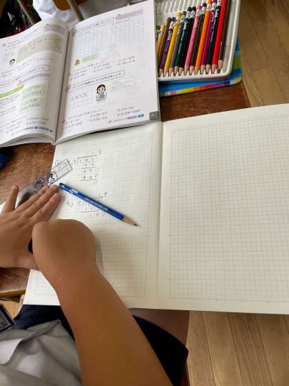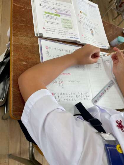 5年生は算数科で小数のわり算に取り組んでいます。今日はたくさんの問題を解きました。よく頑張りました((+_+))