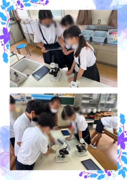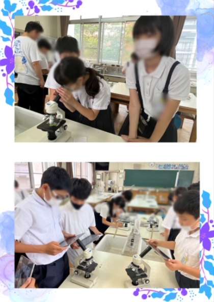 理科では、顕微鏡を使って植物の気孔を観察しました。