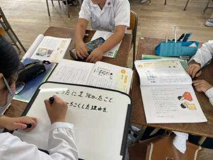 道徳では友達、家族などと生活していく中で「相手のことを考える」とはどういうことなのか、グループで話し合いながら考えました。