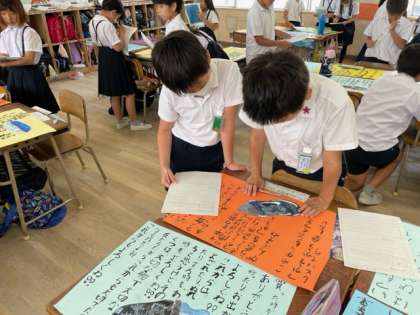 「これすごい。」「なんか感謝の気持ちがすごい伝わるから面白い!」などと、友だちの作品を賞賛する声が上がりました。