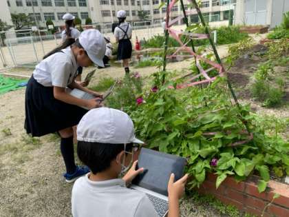 理科の学習では、夏の生き物や植物の観察をしました。春とどのように変わったのか、子どもたちはたくさんの発見をしました!珍しい生き物や植物、見つけることができたかな??