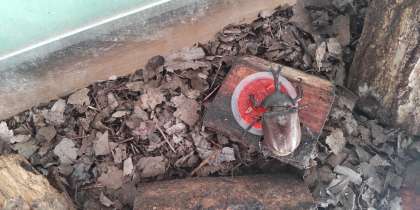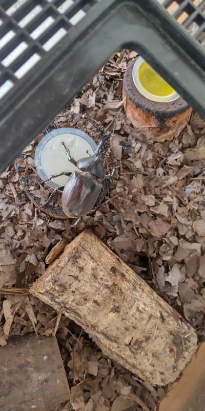 夜行性のカブトムシですが、昼間にも関わらずえさを食べに出てきていました。