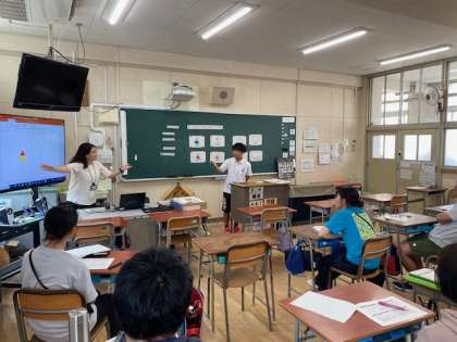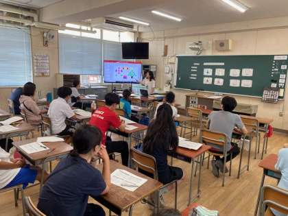 今日は外国語についての研修会がありました。学習指導要領についてや、大阪市の経年調査の結果からの分析についての話を聞いたり、授業の進め方や英語を使ったゲームの紹介をしていただき、実際に教職員でやってみたりと、とても充実した時間となりましまた。2学期からも外国語の時間に実践していきたいと思います。