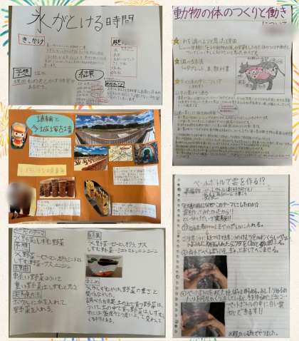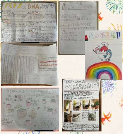 自由研究や自主学習、絵画や習字などたくさんの提出があり、見ているだけでわくわくしてくるものばかりでした。夏休みに頑張った様子が目に浮かびます。紹介しきれないので、今日は自由研究の一部を紹介します^_^