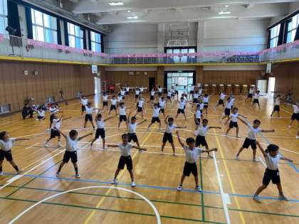 今日から本格的に運動会の練習が始まりました。2年生の団体演技の練習の写真です。さぁ、どんな演技になるか楽しみにしていてください。子どもたちは全力で踊っていました。