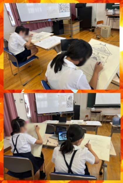 ?図工科では、タブレットで大阪城の瓦や石垣などの細かいところを見ながら丁寧に描いています。来週も頑張りましょう^_^