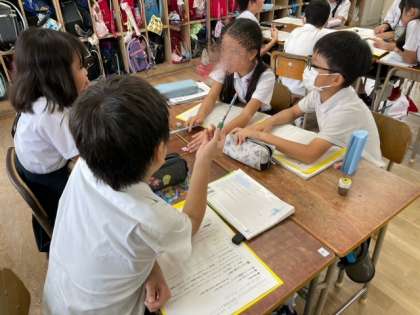 今日は班での話し合いで、これから学級での話し合いに移行していきます。