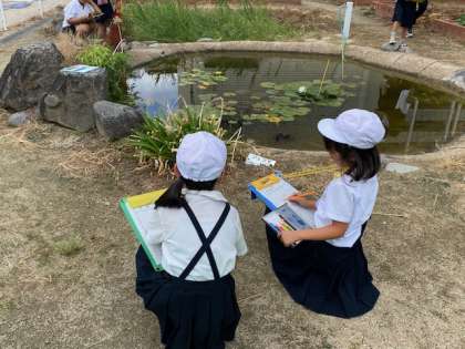 生活科の学習で秋の虫さがしをしました。学習園にはトンボやチョウなどの昆虫がいて、その様子をスケッチしていました!!