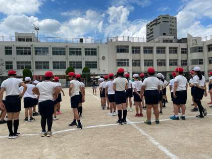 今日は運動会で団体演技の練習をしました。
