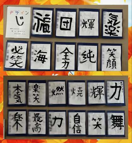 現在の学級の掲示物です。運動会に向けた思いを字とデザインで表現しました。