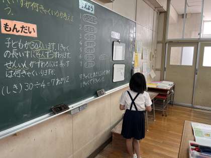 算数科では、「あまりのあるわり算」を学習しています。わる数>あまりをしっかり頭に入れて頑張りましょう!