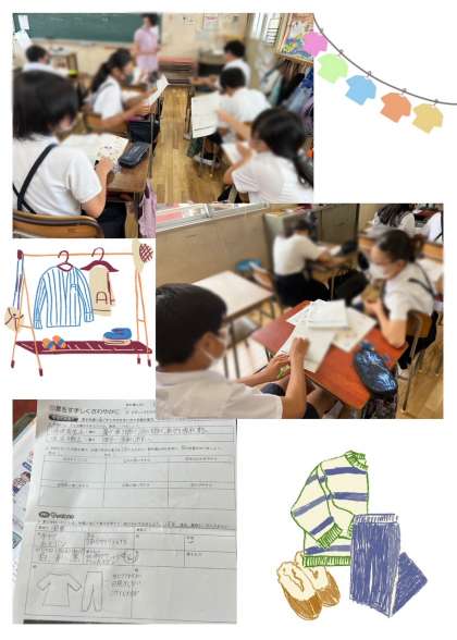 家庭科では、「夏をすずしくさわやかに」という学習をしました。すずしく過ごすためには、どのような服装が良いのかを考えました^_^
