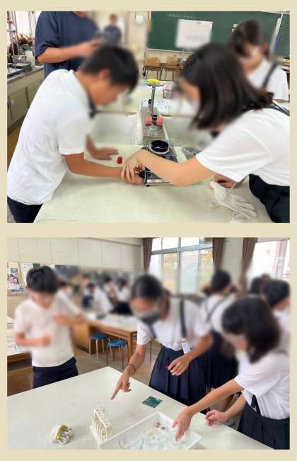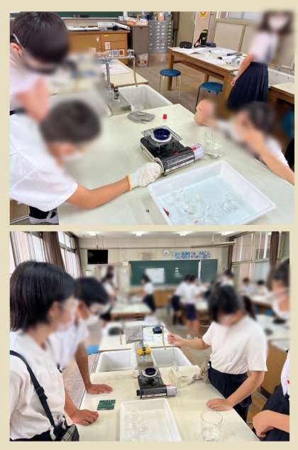 ?理科では、水溶液の違いの実験をしました。見た目やにおい、蒸発させたときの違いで5種類の水溶液を区別しました。