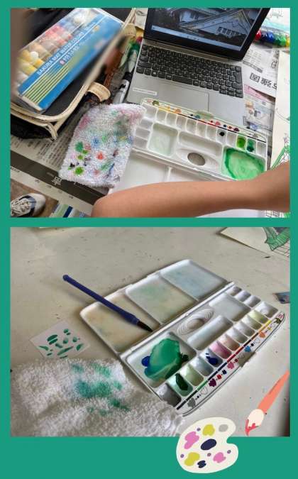 緑は緑でも、何色も混ぜて工夫が見られますね^_^