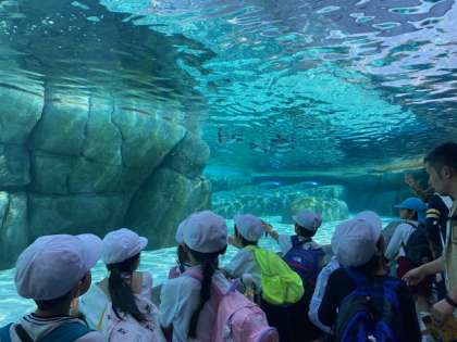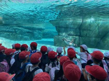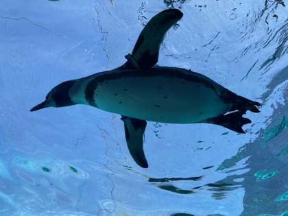 サルのエリアの次は新エリア、ペンギンとアシカのエリアに行きました。ペンギンたちが泳いでいる姿を下から見ることができ、まるで海の中にいるみたいでしたね。