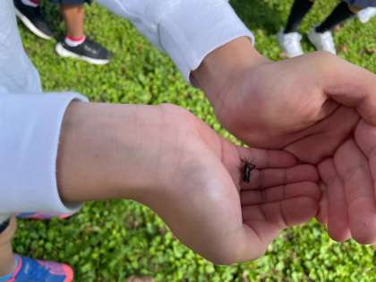 草むらで、コオロギを捕まえました。 大阪では、なかなかできない経験です。