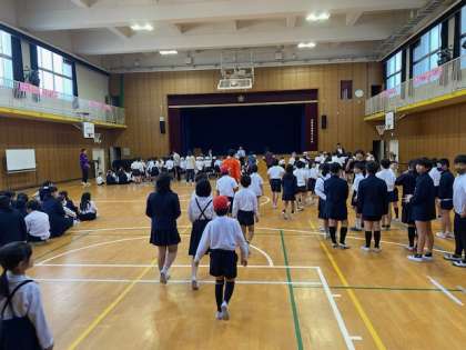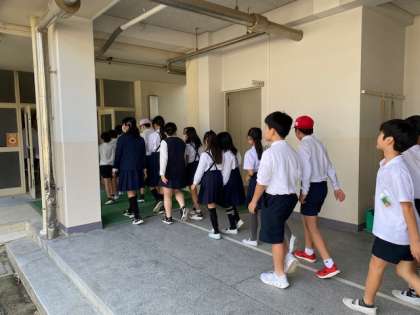 避難訓練をしました。今日は不審者が校内に侵入した場合を想定して行いました。放送を聞いてどこから逃げたら安全なのか、教室でもバリケードをつくり、どのように身を守るのかなどを考え、行動することができました。