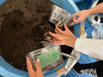 4年生はカブトムシの幼虫を一生懸命育てています。