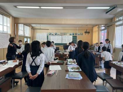 「もみじ」の歌をそれぞれのパートに分かれて歌いました。歌い始めた頃は『つられて歌われへん。』「難しいー。」と話す児童も多かったのですが、とても上手になってきました!
