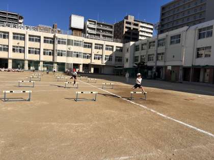 体育科の学習では、「ハードル走」に取り組んでいます。ポイントを確かめながら、タイム測定を行いました。記録が伸びるように練習していきましょう!