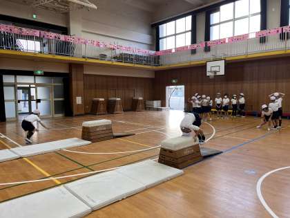体育科の学習では、「跳び箱」のテストを行いました。開脚跳びと台上前転、上手に着地まで成功させることができました!さすが3年生!