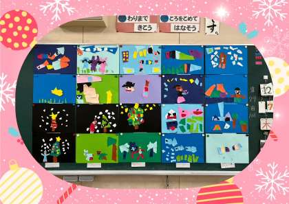 今日の図工では、ちぎった色画用紙の形から貼り方を考えて絵に表す活動をしました。