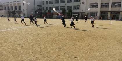 幼小連携の一環として、4時間目に5年児童と桜宮幼稚園年長さんが運動場で凧揚げをしました。暖かくて活動はしやすかったのですが、風がないのが残念でした。