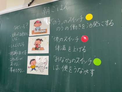 今日は朝ごはんについて学習しました。バランスの良い朝ごはんを心がけてていこう^_^