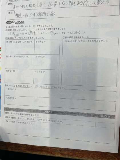 家庭科の時間には整理整頓について学習しています。年末の大掃除が楽しみですね。期待しててください^_^