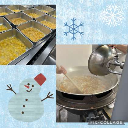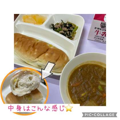 3学期の給食が始まりました!子ども達に人気のカレー味でたくさんおかわりしていました(^^)また、パンはおさつパンが出ました。さつまいもは、ペーストと角切りの両方入っていてしっとりした味わいで人気です(^^)