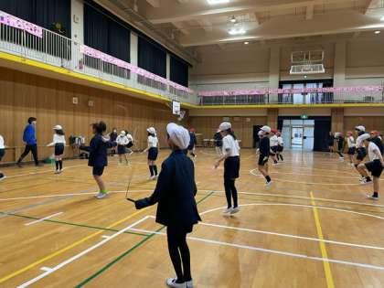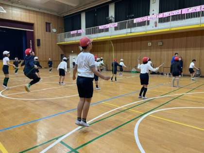 今日は雨が降ったので持久走はできず、体育館で縄跳びをしました。前跳びや後ろ跳び、大縄跳びでダブルダッチの練習など、色々な跳び方をチャレンジしました。