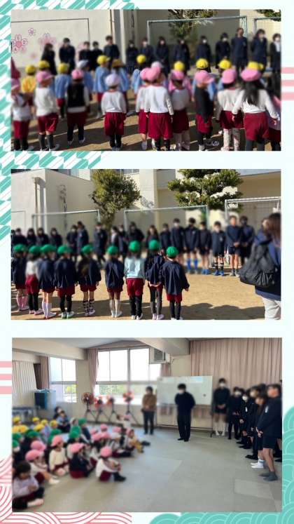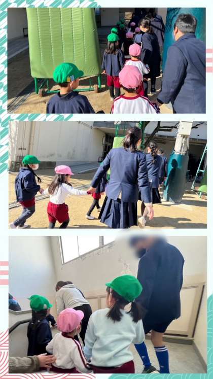 今日は、桜宮幼稚園の園児と一緒に高所避難訓練をしました。
