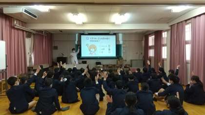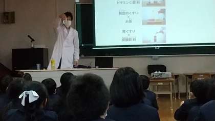薬の飲み合わせの危険性や、体内でどのように作用していくかなど、実際に実験をしてみせてくれました。また、薬物乱用についてもお話があり、みんな真剣に聞いていました。