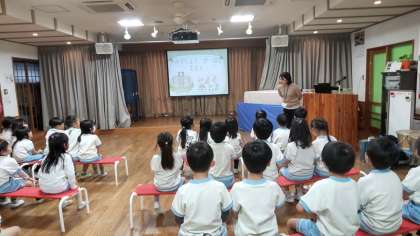 小学校の給食について、保育園の子たちと楽しく学ぶことができ、とても楽しい時間でした。