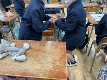 5年生が何らや練習中。。。3月に行われる出前授業の準備です!