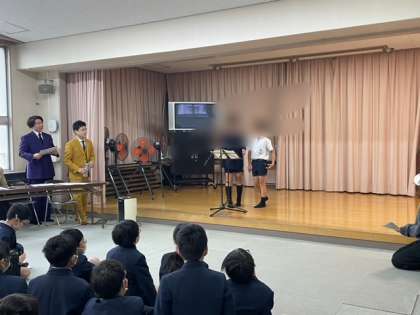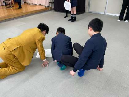 吉本興業さんによる漫才ワークショップが行われました。コンビやトリオでの漫才を通して、大きな声を出したり自分を表現したりすることができました。みんなの漫才が上手で、第二音楽室からは常に笑い声が響いていました。とても良い経験になりましたね^_^
