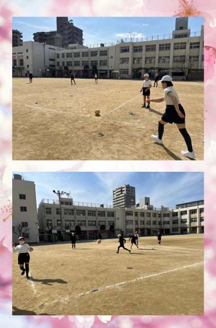みんな遊びではキックベースやドッジボールをしました。小学校生活も残りあとわずか!