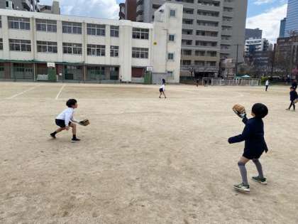 グローブを使って運動場でキャッチボールをしました。初めてグローブをつける子が多くて、みんなとても嬉しそうでしたね。大谷選手、ありがとうございました!