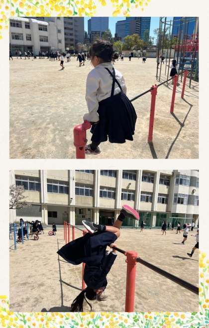 一輪車や鉄棒などに取り組む姿が多く見られました。桜の力に取り組むのが楽しみですね!