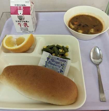 ビーフシチューは米粉を使用し、小麦粉アレルギーの児童にも食べることのできるおかずにしています。