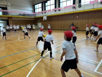 体育の時間に20メートルシャトルランを行った後、1組対2組でドッチボールをしました。