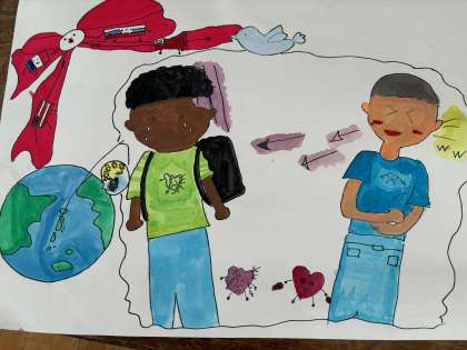 図画工作科で取り組んでいる平和ポスターです。完成間近です!