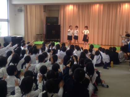 11月9日(月)の3時間目、2年生が1年生や教職員を招待して、「おいもパーティー」を行いました。学習園でとれたサツマイモをつかいました。